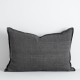 Arcadia 100% Linen Cushion by Baya - Nori - Raw texture is celebrated in stunning natural tones. Handwoven in 100% linen, the Arcadia features a 1cm flange edge, enhancing strength and durability while creating an easy and contemporary aesthetic. The natural charcoal tone and lumbar shape makes this the perfect finishing piece for a pared-back, thoughtfully crafted interior.