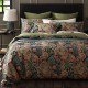 Anders Duvet Cover Set by MM Linen - The Anders duvet cover set features an enchanted and intriguing forest design in a modern format on an ink-coloured background. The reverse side complements the design with an olive green and pale green bee graphic design.