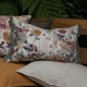 Calloway 60x40cm Cushion by MM Linen - Beautiful botanical design featuring florals and bees in pinks, sage greens and cumin with a sage green fringe. Printed on a linen cotton blend.