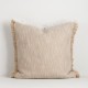 Caspian In & Outdoor Cover/Cushion by Baya - Almond - Add visual interest and dimension to outdoor settings with the relaxed design of the Caspian cushion. Featuring soft almond and ivory tones, the simple weave and two-tone fringing provides a simple, textural aesthetic for contemporary living spaces. Handwoven from soft PET yarn, this versatile piece works just as well styled indoors, especially in areas exposed to sunlight.