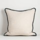 Darcy Cover/Cushion by Baya - Cloudburst - Featuring a soft, off-white bouclé base framed by a chunky cotton fringe, the Darcy cushion’s generous size and inviting texture is designed for effortless layering. Made from a blend of cotton and recycled polyester, the slate-blue fringe adds a subtle element of colour that adds depth and contrast to cushion pairings.