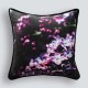 Dark Botanic Spring Petal Cushion by Limon - The moody Spring Petal design printed on soft, polyester velvet will add drama to your living space with its strikingly rich black and fuchsia colour tones.