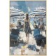 The sophisticated palette of navy, slate blue, and crisp white is grounded by warm sandy tones, making it a timeless addition to a contemporary or coastal-inspired interior and offers a window into a world of summer calm.