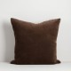 Edward Cover/Cushion by Baya - Chocolate - Plush cotton velvet meets considered structure in this chocolate-toned, box-style cushion. Framed with striped linen gussets, the Edward is a study in contrasts, balancing soft texture with architectural form. The result is a refined interplay of materials that is both luxurious and effortlessly liveable.