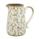 Transforming the traditional round pitcher into an earthy statement piece, this vase features a weathered white finish, a textured rustic rim, and a series of multi-colored floral motifs. Whether displayed empty or filled with a collection of flowers, it will capture the eye from any tabletop, mantel, dresser, or sideboard.