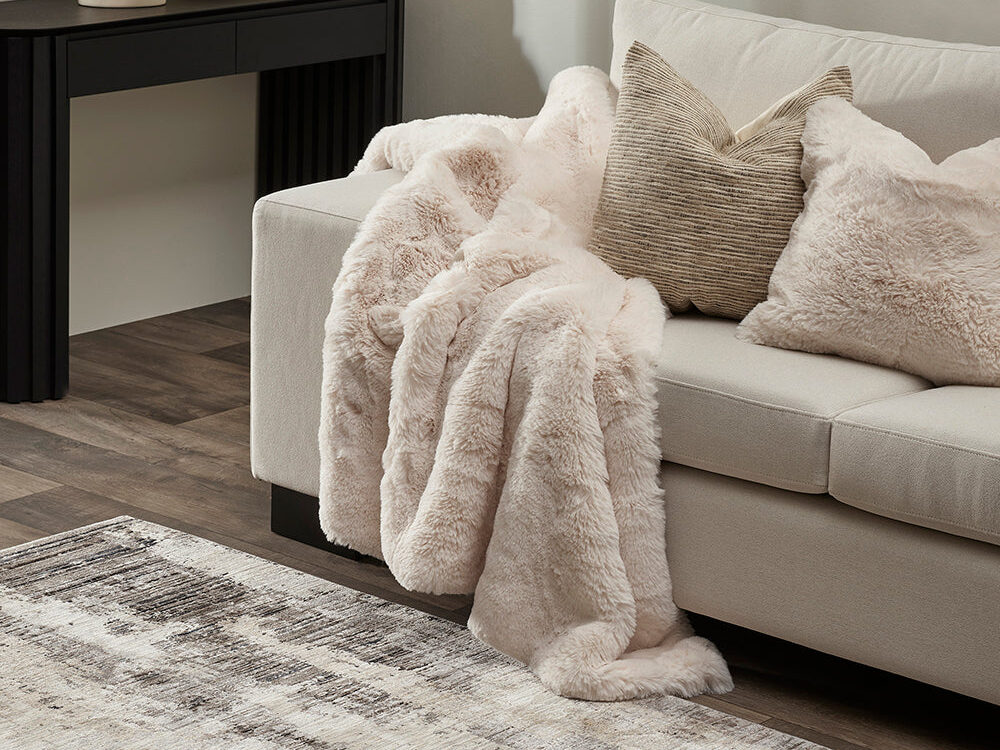 We are so excited about the arrival of the new Pelage faux fur throw & cushion collection by Ollo. A premium faux fur in three stunning colours, just in time for winter! Snuggle into the lush pile made from premium fibres, this throw has beautiful drape and a super soft velvet backing. Available in olive, ivory and taupe.