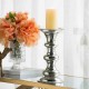 Crafted of antiqued silver glass,this pillar candle holder has a traditional look.The decorative holder has ribbed glass detail that enhances the round base.The shiny,metallic holder will add visual appeal along with functionality to your home.
