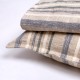 Blue/natural stripe - the Rockwell has a deliberate casual and natural approach to bedding. This medium weight duvet cover features distressed stripes in neutral tones. Front: 50% linen and 50% cotton, back 85% cotton and 15% linen. Note: Pillowcases are sold separately (standard pillowcases now sold out).