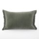 Sabel Long Cushion by MM Linen - Thyme - Our luxurious feather and down filled Sabel Cushions are constructed expertly from pure cotton velvet with an elegant fringe edge. The 60 x 40cm cushion has a fringe on two ends with linen cotton reverse side.