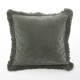 Sabel Square Cushion by MM Linen - Thyme - Our luxurious feather and down filled Sabel Cushions are constructed expertly from cotton velvet with a linen cotton reverse side and an elegant fringe edge. Filled with a 5% duck down and 95 % duck feather mix.