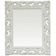 A classical ornate mirror with a distressed chalk paint with flecks of gold colour peeking through along with a French finish and a uniformed border. Size: 1305 X 1090 X 60MM.
