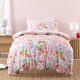 Strawberry Meadow Duvet Cover Set by Squiggles - Say hello to bedtime magic! Strawberry Meadow is bursting with fairytale fun, featuring a garden bursting full of cheerful flowers, spotty red toadstools, friendly fluttering fairies and juicy strawberries scattered across a dreamy pink base. This snuggly design is printed on 100% cotton, reversing to a hand-painted stripe print, an enchanting match to the co-ordinating Scribble Stripe Pink sheeting (sold separately).