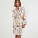 White Spring Flowers Robe by Baksana - Spring Flowers; This digitally printed, spring-inspired kimono robe is the perfect robe all year round. Featuring two pockets and a waist tie.
