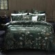 Zen Duvet Cover Set by MM Linen - Opulent and reimagined. This lush design brings the wild outdoor beauty of nature indoors. Forest greens intertwine with golds and ochres harbouring birds and butterflies flying between the foliage.
