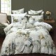 Zinnia Duvet Cover Set by MM Linen - A whimsical, romantic panel design with majestic birds perched on foliage, placed on a soft grey-neutral painterly base.